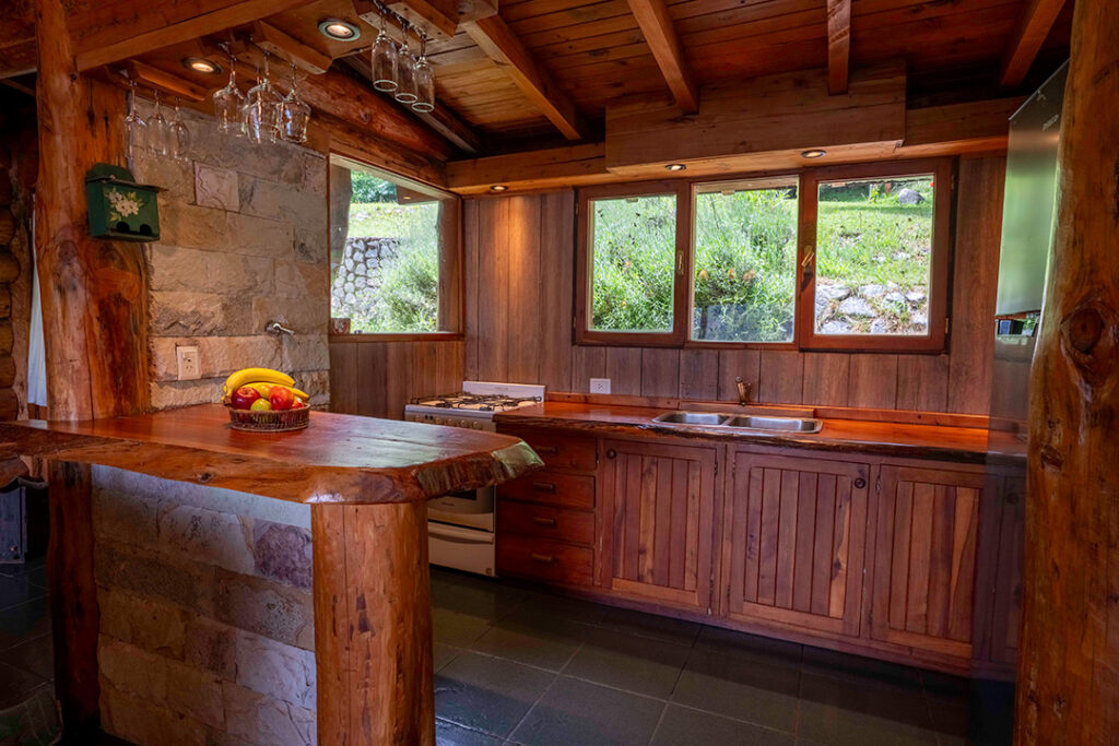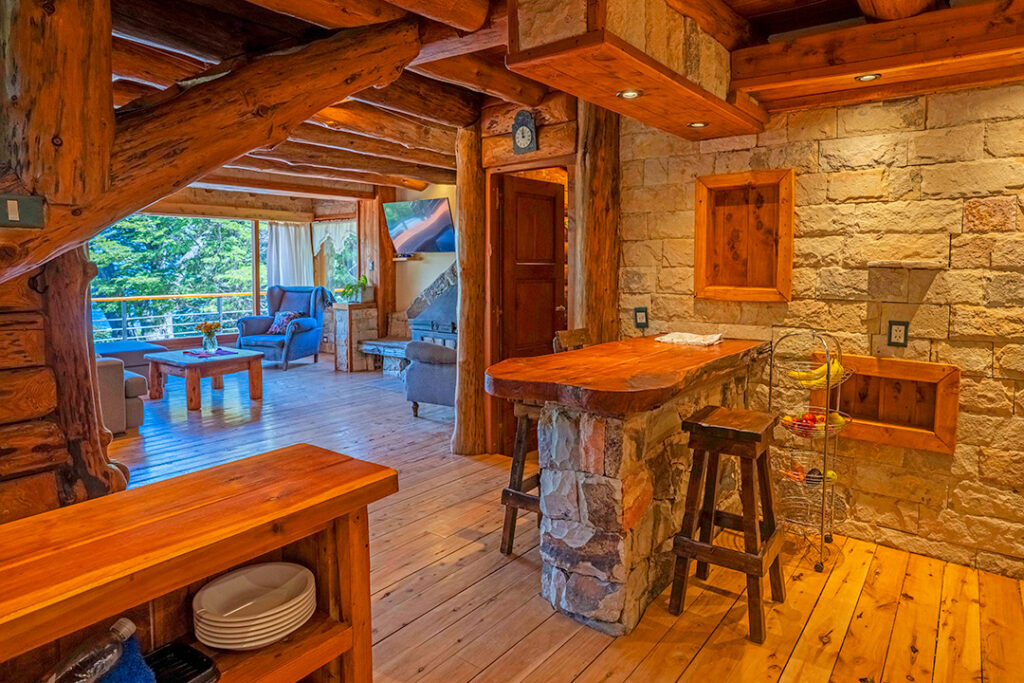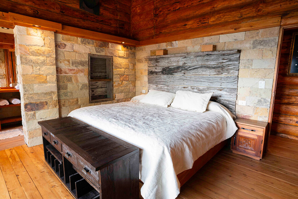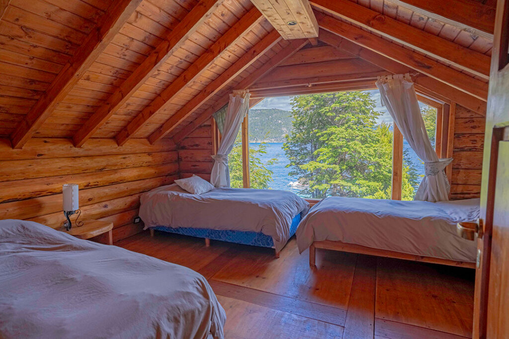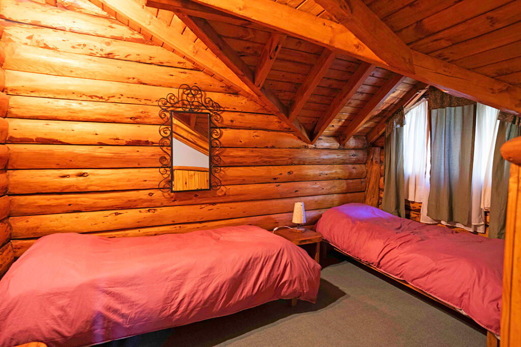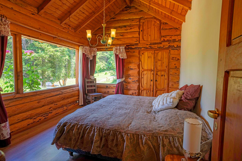 Esta cabaña cuenta con una habitación matrimonial con baño suite, y otras dos habitaciones de cama simple, sumando un total de 7 plazas.