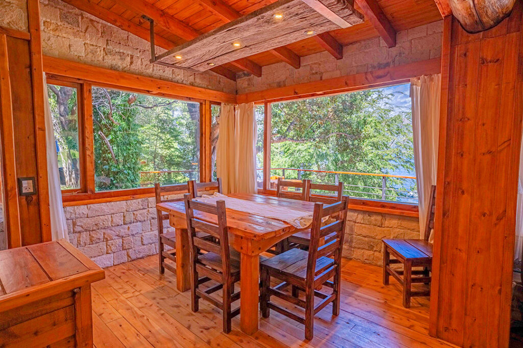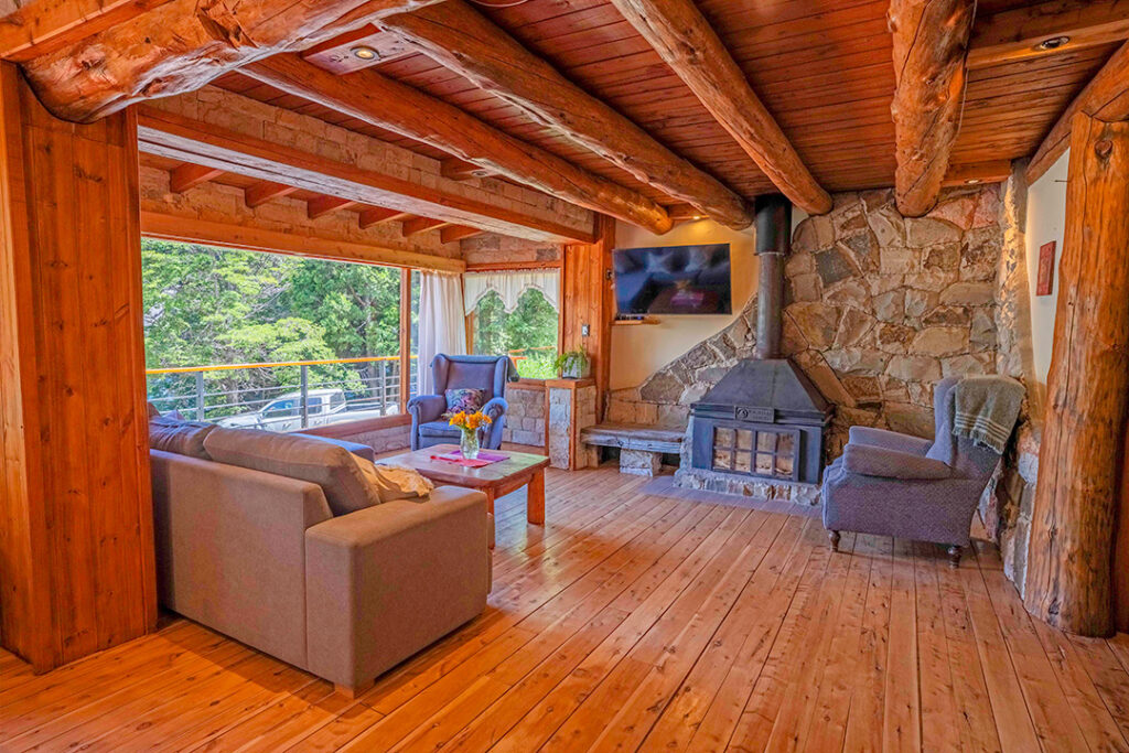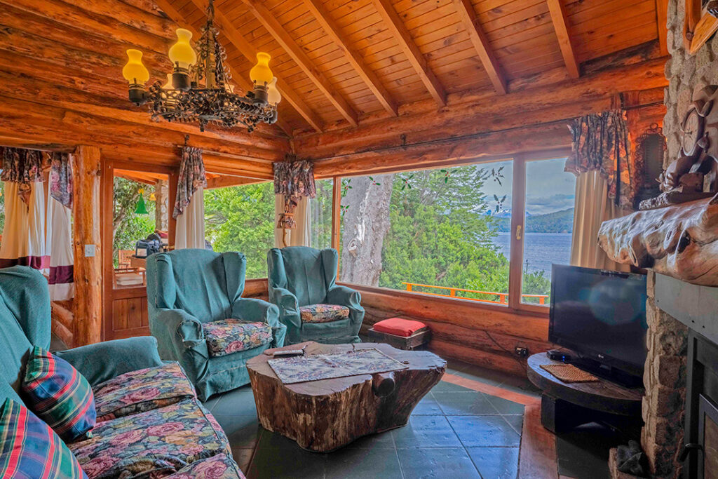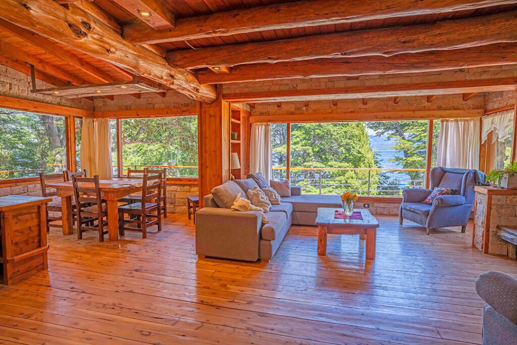 Equipada con una amplia sala de estar, comedor con vista al Lago Nahuel Huapi, cocina completa , TV satelital, DVD y un cálido hogar a leña, harán de su estadía unas vacaciones inolvidables